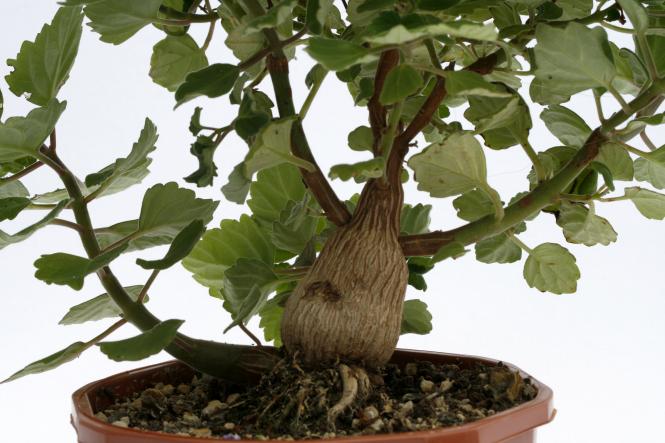|6-8 cm Ø|Der kleine Bonsai mit der großen Wirkung: Plectranthus ernstii - ein exotischer Hingucker. Verleihen Sie Ihrer Pflanzensammlung eine afrikanische Note mit dem pflegeleichten Plectranthus ernstii! Der knollige, verdickte Stamm verleiht dem Plectranthus ernstii das Aussehen eines kleinen Bonsai-Baums und wächst im Laufe der Jahre zu einem wahren Kunstwerk heran. Die zarten blauen Blüten und das intensive Grün der Blätter setzen dabei wunderschöne Akzente. Für eine gute Entwicklung werden die grünen Neutriebe unterhalb der Krone entfernt. So wird der Plectranthus nicht nur optisch ein Highlight, auch der angenehme, minzig-herbe Duft wird Sie begeistern. Plectranthus ernstii ist robust und pflegeleicht und fühlt sich im Sommer drinnen als auch draußen wohl. Ob als Solitärpflanze oder in einer Gruppe - diese Pflanze ist ein echter Blickfang und bereichert jede Sammlung. Der Beiname Mottenkönig sagt es bereits: das Laub der Pflanze hält Motten fern und sogar zum räuchern eignet sich Plectranthus - deswegen ein weiterer Name: Weihrauch. Der botanische Name ehrt den Südafrikanischen Sukkulentenforscher Ernst van Jaarsveld. Pflege: Sonniger Platz im Sommer, (im Sommer gern auch im Freien), dabei schwach feucht halten und etwas düngen,Im Winter hell, etwas trockener bei 5 - 18° C. Wichtiger Hinweis: Bei diesen Exemplaren ist beim Durchmesser der Stamm der Pflanze gemeint.